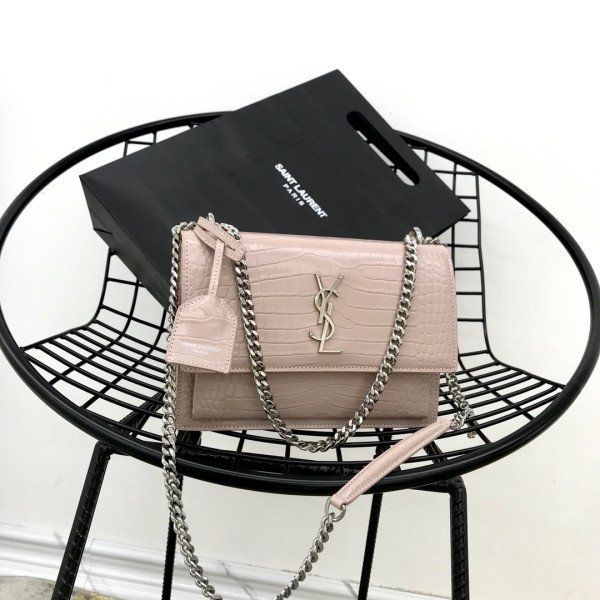 • [YSL] 크로커다일 엠보스드 샤이니 가죽 미듐 선셋백