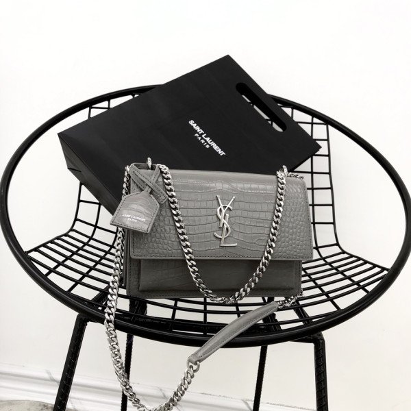 • [YSL] 크로커다일 엠보스드 샤이니 가죽 미듐 선셋백